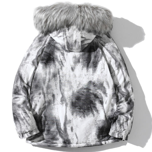 Parkas Winter Jacket Men Distressed Tie Dye Inkjet Printed Padded Coats Jackets Casual Warm Harajuku Fashion Streetwear