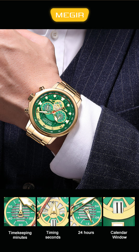 MEGIR Luxury Men Watches Stainless Steel Quartz Wristwatches Fashion Men Business Watch Clock Male Chronograph Relogio Masculino