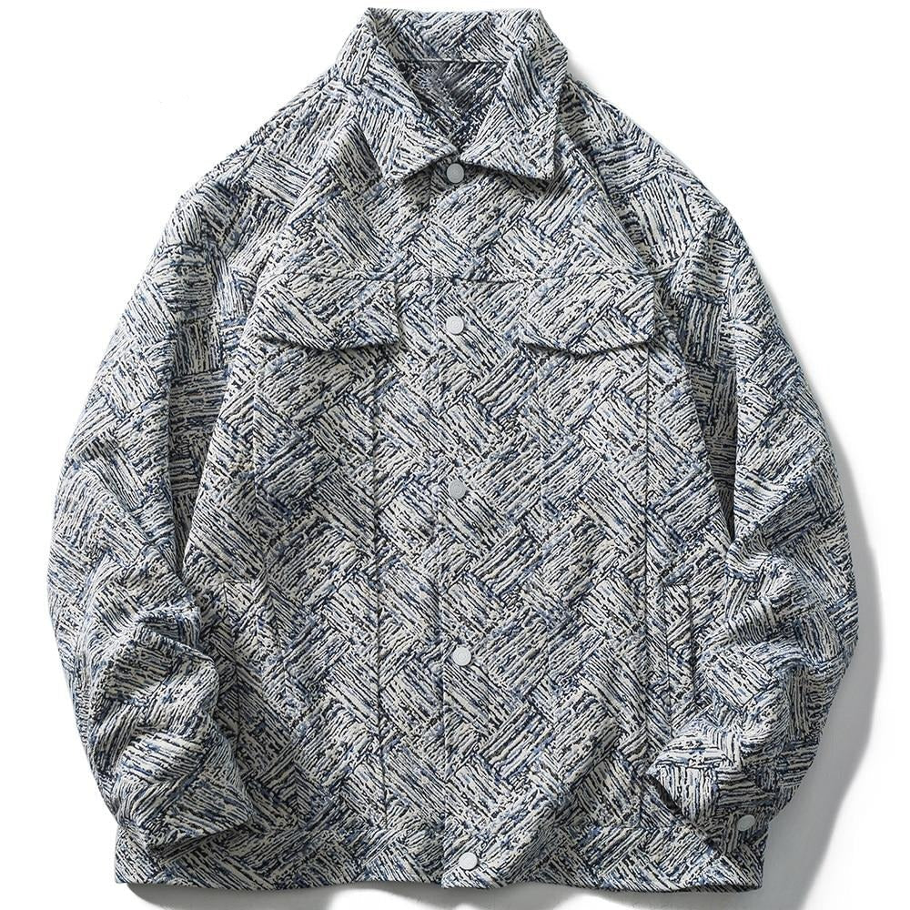 Jacket Men Harajuku Pattern Letter Patch Turn-down Collar Jackets Coat Baggy Japanese Fashion All-match Outwear Autumn