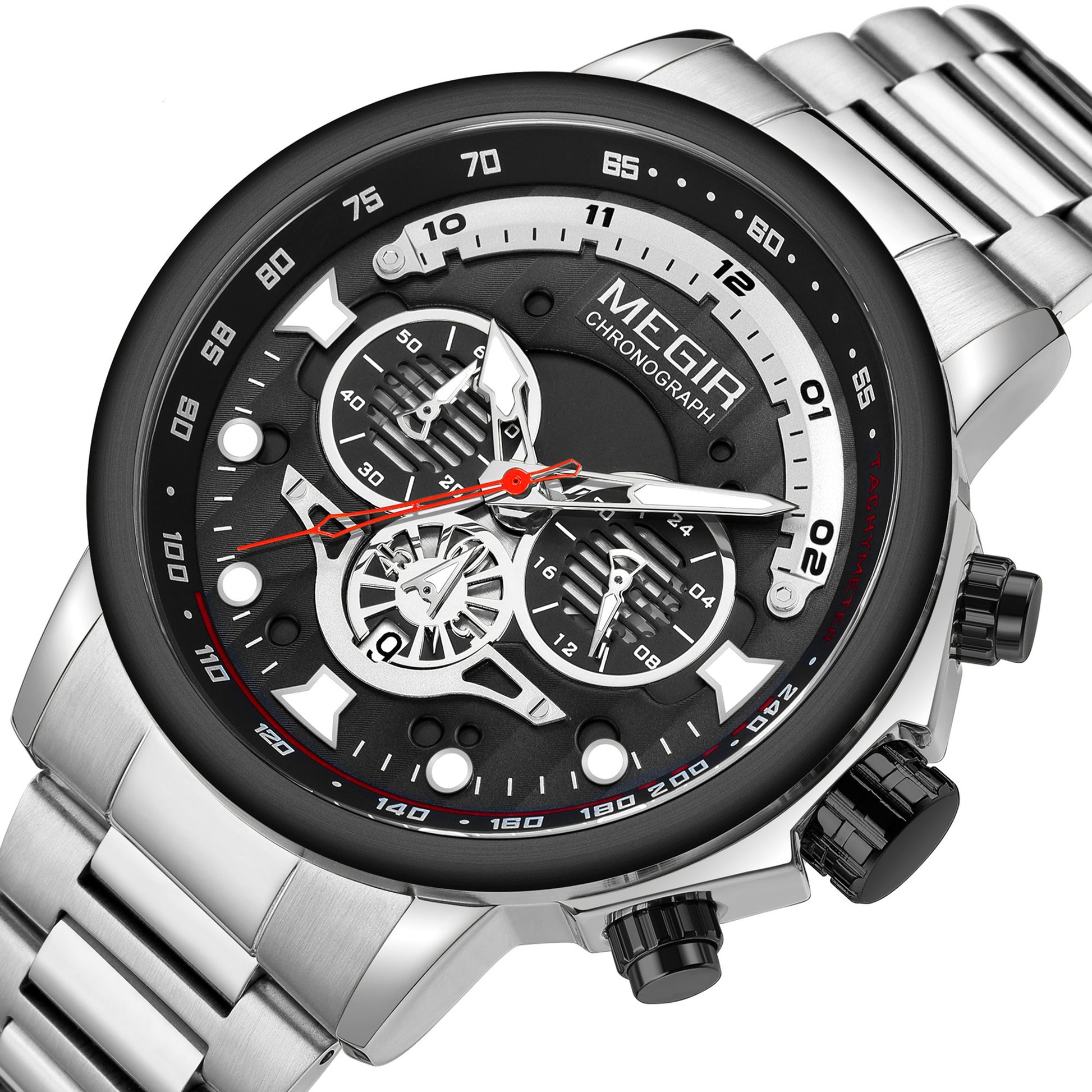 MEGIR Luxury Men Watches Stainless Steel Quartz Wristwatches Fashion Men Business Watch Clock Male Chronograph Relogio Masculino